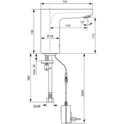 Ideal Standard Sensor-Waschtisch-Armatur Ceraplus, Ohne Misch., Netzbetrieben, Ausld.116mm, Chrom