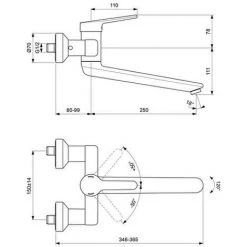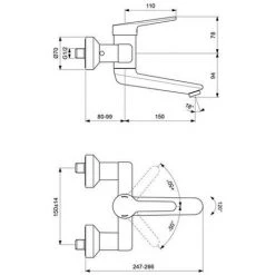 Ideal Standard Wand-Waschtischarmatur Ceraplus 2,5 X 180-199mm,absp.S-Anschlüsse, Chrom, BC110AA