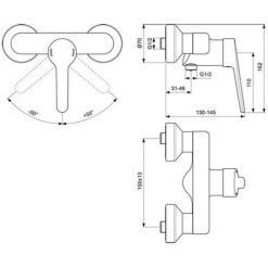 Ideal Standard Badearmatur Unterputz ConnectBlue, Bausatz 2, Ros.d:163mm, Eigens.DIN EN 1717, Chrom