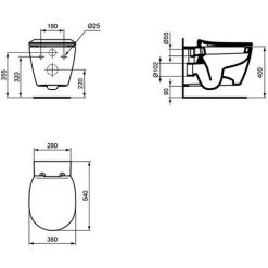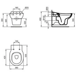 Ideal Standard Wandtiefspül-WC Contour21,ohne SpülraNd, Barrierefrei, 360x700x400mm, Weiß, S306901