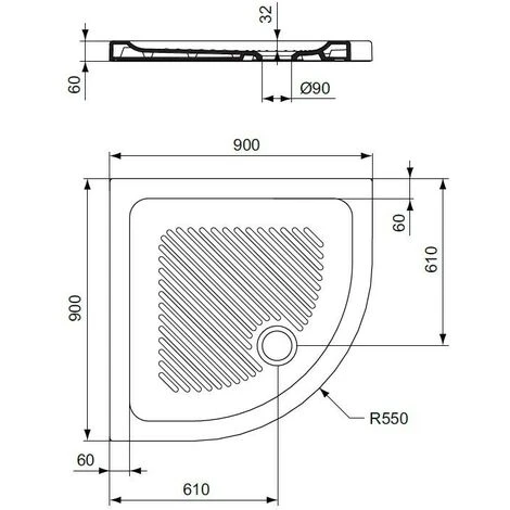 Eck-Duschwanne 90X90 cm Keramik Ideal Standard Connect weiĂ rutschfest