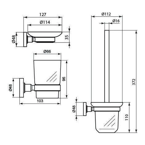Bürstengarnitur · Papierrollenhalter/ Reserverollenhalter und Handtuchhaken