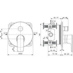 Ideal Standard Badearmatur Unterputz Connect Air, Bausatz 2, Rosette d:163mm, Chrom