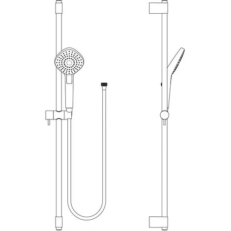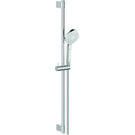 Brausekombination 900 mm. 3-Funktionshandbrause Diamond 115 mm (Strahlarten: Regen, Massagestrahl und sanfter Regen). Anti-Kalk-Funktion. Brausestange 900 mm mit schwenkbarem Schieber aus Metall. Wandbefestigung aus Metall. Befestigung zur erleichterten Montage verstellbar. Brauseschlauch Idealflex 1750 mm.
