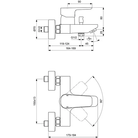 IDEAL STANDARD Aufputz-Badearmatur Einhebel-Mischer für Badewanne