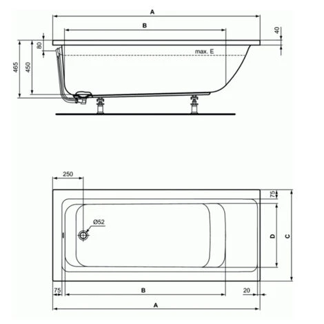 Ideal Standard Connect Air Gerade Badewanne Mit Acrylbeinen 170 X 75 X 46,5 Cm, Weiß (R000701)