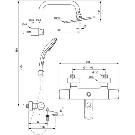 Ideal Standard Duschsystem M, Idealrain mit CeraTherm 100