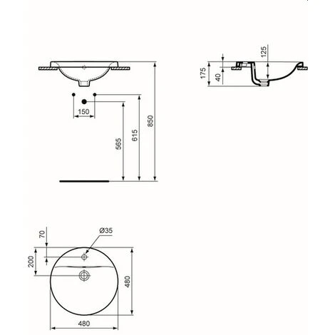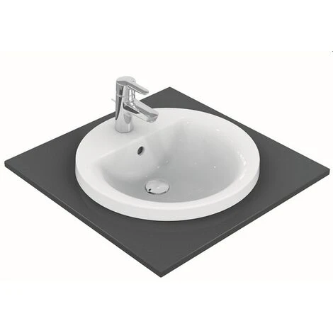 Einbauwaschtisch rund aus Kristallporzellan. Armaturenbank: 1 Hahnloch mittig durchgestochen. Mit Überlauf. Norm: DIN EN 14688 CL 15, DIN EN 31 Farbe: Weiß (Alpin) Außenmaße (BxTxH): 480x480x175 mm Innenbecken Tiefe: 125 mm Gewicht: 7,0 kg Hersteller: