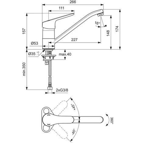 - Schwenkbereich: 90°