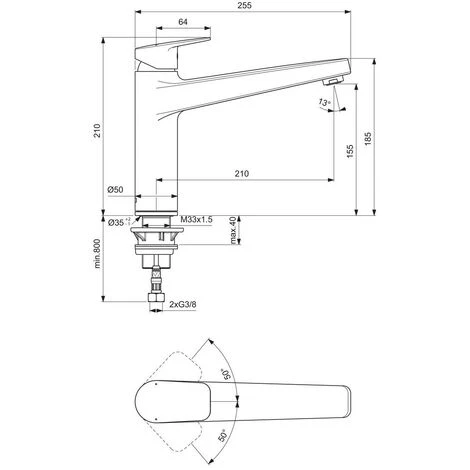 - 35 mm erforderlicher Hahnlochdurchmesser