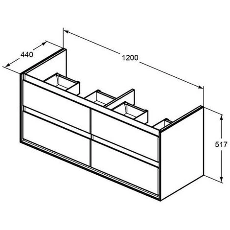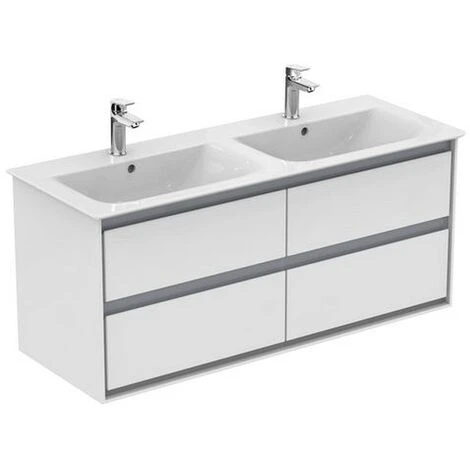Möbeldoppelwaschtisch-Unterschrank inklusive Befestigungssatz. 4 Auszüge. Auszüge: Softclosing Oberfläche: Weiß / Hellgrau Außenmaße (BxTxH): 1200x440x517 mm Hersteller: Ideal Standard Serie: Connect Air Artikel-Nr.: E0822KNMöbeldoppelwaschtisch-U