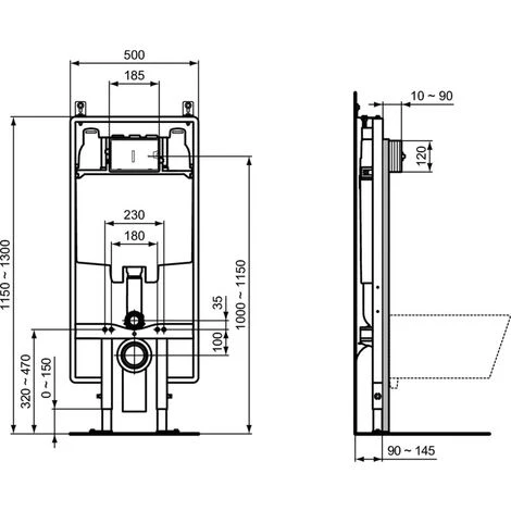 Typ: Ideal Standard Prosys 80 SpĂŒlkasten fĂŒr hĂ€ngende SanitĂ€rkeramik, fĂŒr GipskartonwĂ€nde;
