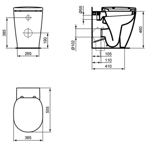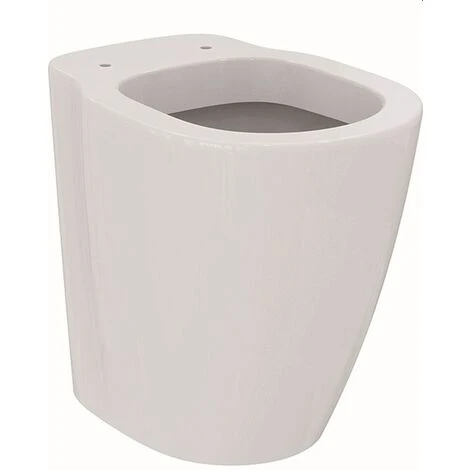 Standtiefspülklosett für erhöhte Sitzposition aus Kristallporzellan. DIN EN 997. Geschlossener Spülrand. Für Auf- oder Unterputzspülkasten mit 4,5 Liter Inhalt oder Unterputz – Druckspüler 3/4. Einlauf: hinten Abgang: waagerecht verdeckt Norm: DIN