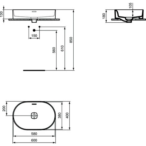 Ideal Standard Strada II Aufsatzwaschtisch 60×40 ohne Hahnloch aber mit Überlauf