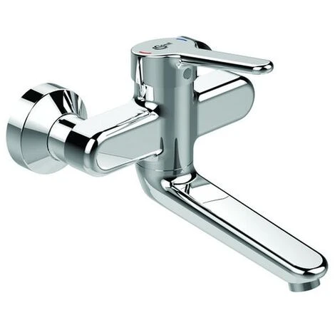 Einhebel – wand-Waschtischarmatur DN 15. Dreifach einstellbarer, selbstentleerender, nickelfreier Auslauf (fixiert, nicht fixiert +/-60 Grad, +/- 35 Grad, mit vandalensicherem Strahlbrecher (Aerosolarm). Auslauflänge 150 mmit Ausladung 194 – 213 mmit Bed