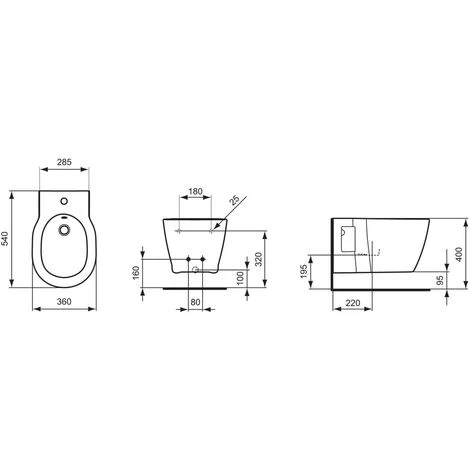 Ideal Standard Wandbidet Connect, 1 Hahnloch, 360x540x305mm, Weiß