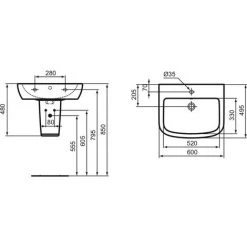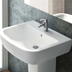 Quadratisches Wandwaschbecken aus Keramik, 60 cm lang und 49,5 cm breit. Das Waschbecken Gemma 2 kann mit einem Design-Siphon oder mit einer Halbsäule (separat erhältlich) aufgehängt werden. Das Design des Waschbeckens ist eher modern und geradlinig, die Wanne ist sehr groß und eignet sich daher für alle Situationen, in denen ein praktisches und funktionelles Produkt zu einem erschwinglichen Preis gesucht wird. Die Qualität der Keramik ist sehr hoch, da das Waschbecken von einem führenden Unternehmen wie Dolomite hergestellt wird. Es wird mit einem offenen Hahnloch in der Mitte geliefert und kann mit jedem Wasserhahn auf dem Markt installiert werden.Für verschiedene Installationen kann eine Halbsäule (Artikelcode J521601) oder eine Säule (Artikelcode J521501) separat erworben werden.