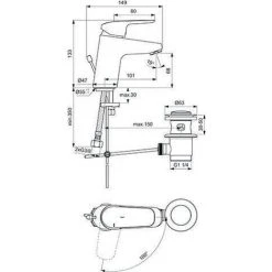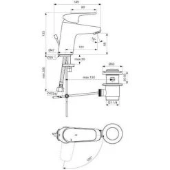 DN 15 · in Mittelstellung Kaltwasser · starrer Gussauslauf · Luftsprudler mit Metallring und druckunabhängigen Mengenregler 5 l/min · Sockelmaß Durchmesser 47 mm · Metall Zugknopf-Ablaufgarnitur G 1 1/4? · Ausladung 101 mm · Auslaufhöhe 68 mm · flexible Anschluss Weitere technische Eigenschaften: · Akzentfarbe ohne· Anschluss Vorlauf Schlauch (Verschraubung)· Anschlussmaß Zufuhr 3/8 Zoll· Anzahl der Armaturenlöcher 1-löchig· Anzahl der Griffe eingriffig· Aufbauhöhe gesamt 133mm· Aufbauhöhe Unterkante Hahnauslass 68mm· Ausführung Ablauf fest· Auslauftyp gegossen· Kennzeichen UBA-Anforderung Ja· Kennzeichen UBA-Positivliste Ja· Material Hahn Messing· Mit Griffen Ja· Mit Handbrause Nein· Mit Heißwasser-Sparfunktion Ja· Mit Kupplungen Nein· Mit Rosetten/Abdeckplatte Nein· Mit Temperaturbegrenzung Ja· Mundstück Wasserhahn Strahlregler· Niederdruckausführung Nein· Oberflächenbehandlung sonstige· Oberflächenschutz verchromt· Schließmechanismus Kartusche keramisch· Versehen mit Vorrichtung für Ablaufstopfen· Vorsprung Ablauf 101mm· Wassersparposition Nein