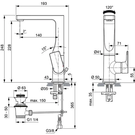 Sie möchten Ihrem Badezimmer einen klassischen und dennoch modernen Stil verleihen? Dann ist die Ideal Standard Edge Waschtischarmatur genau das Richtige fĂŒr Sie! Die Waschtischarmatur hat eine Gesamthöhe von 24,8 cm, eine Ausladung von 14 cm und eine niedrige Auslaufhöhe von 22,8 cm. Der Bedienungshebel ist aus Metall und der Schwenkbereich belĂ€uft sich auf 90 Grad. Zudem besitzt die Waschtischarmatur einen HeiĂwassertemperaturbegrenzer sowie ein integriertes Fettreservoir.