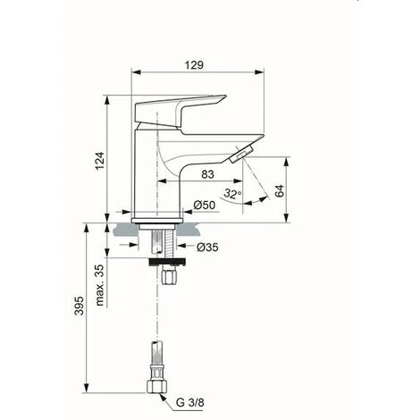 Einhebel-Waschtischarmatur PICCOLO DN 15. Starrer Gussauslauf. Luftsprudler mit Metallring und druckunabhängigem Mengenregler 5 l/Min.. Sockelmaß Durchmesser 50mmit Ohne Ablaufgarnitur. Ausladung 83 mmit Auslaufhöhe 64 mmit Flexible Anschlussschläuche